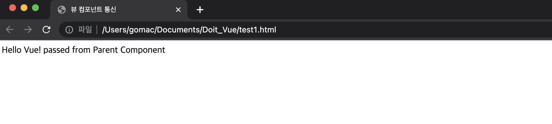 <!--상위 컴포넌트의 message 속성 값인 'Hello Vue! passed from Parent Component' 텍스트를 하위 컴포넌트의 propsdata로 전달하였음.-->